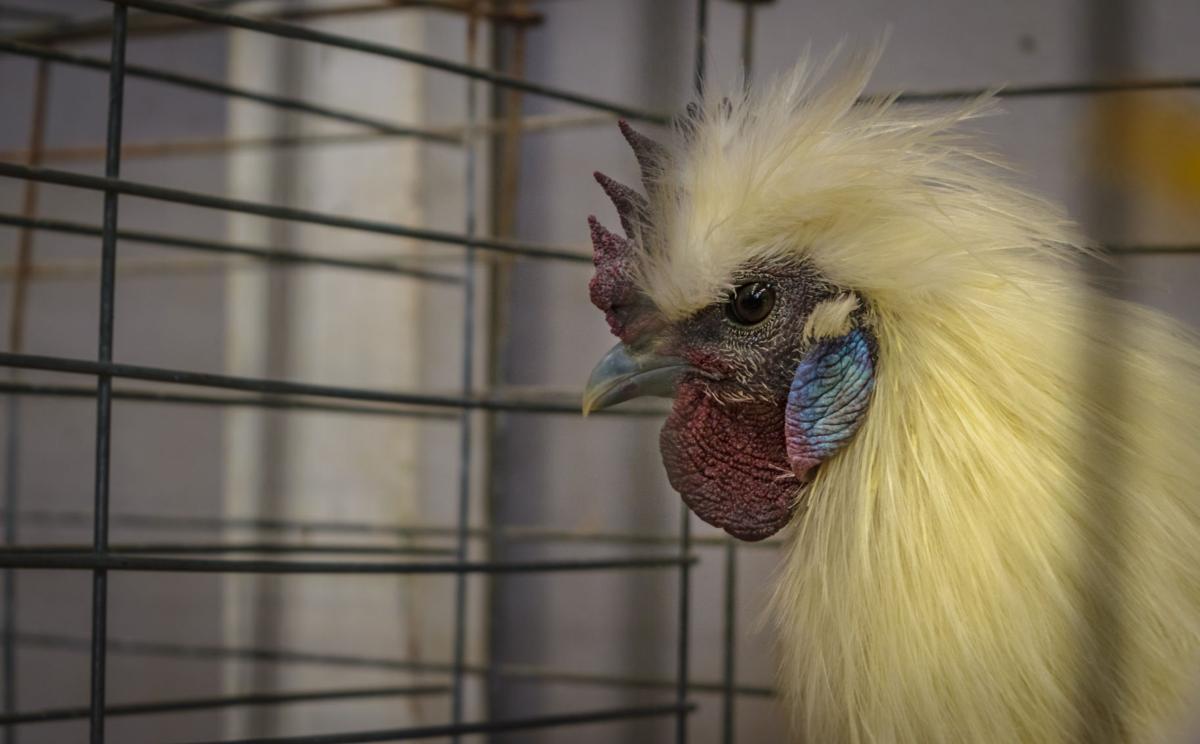 The Wednesday before fair is livestock day. Each department has its own drop-off time. When poultry comes in, they’re checked by two different vets for health. Prior to arrival, the superintendent already knows how many birds will be coming, and they have set up cages and tables to accommodate them. The superintendent follows the judge around as they rank poultry, marking down the rating in the official judging book and placing a ribbon on each cage.